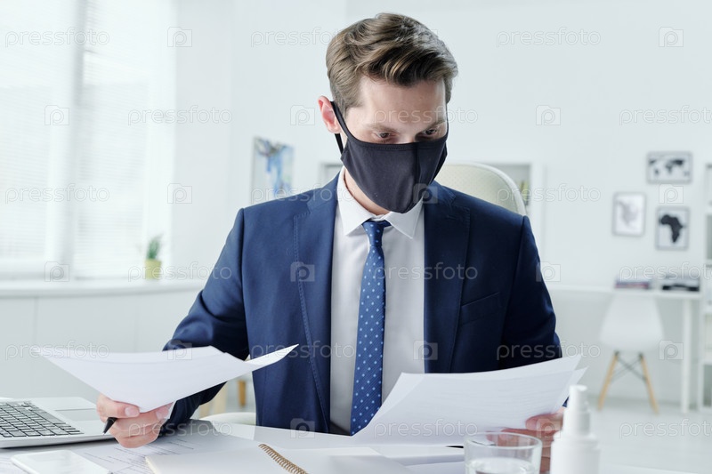 Бизнесмен с контрактом на чтение масок