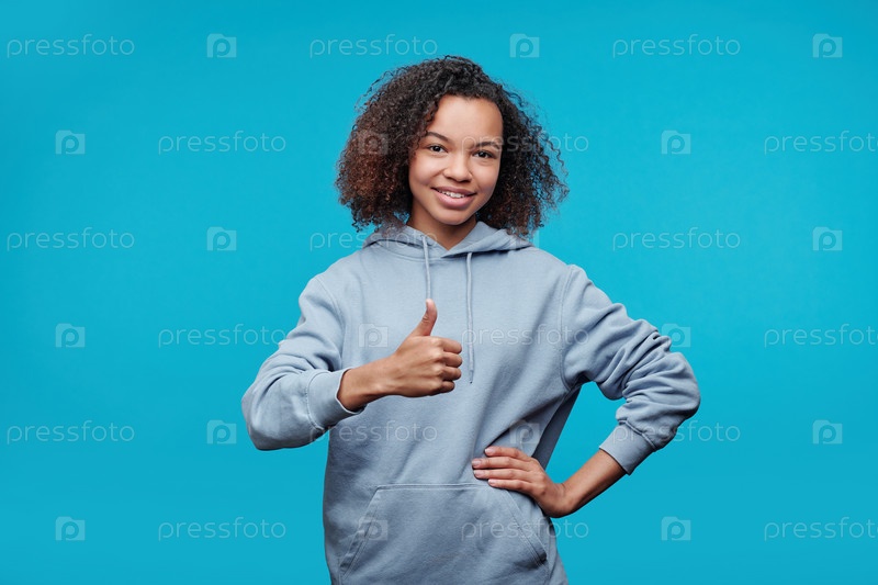 Черная девушка показывает палец вверх