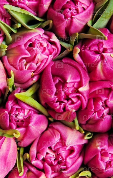 Большой букет красивых розовых тюльпанов