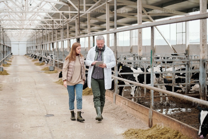 Ветеринар скота дает советы владельцу коровы