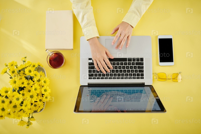 Предпринимательница, работающая на ноутбуке