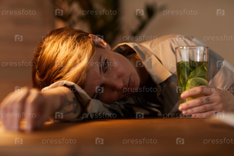 Женщина пьет алкогольный коктейль