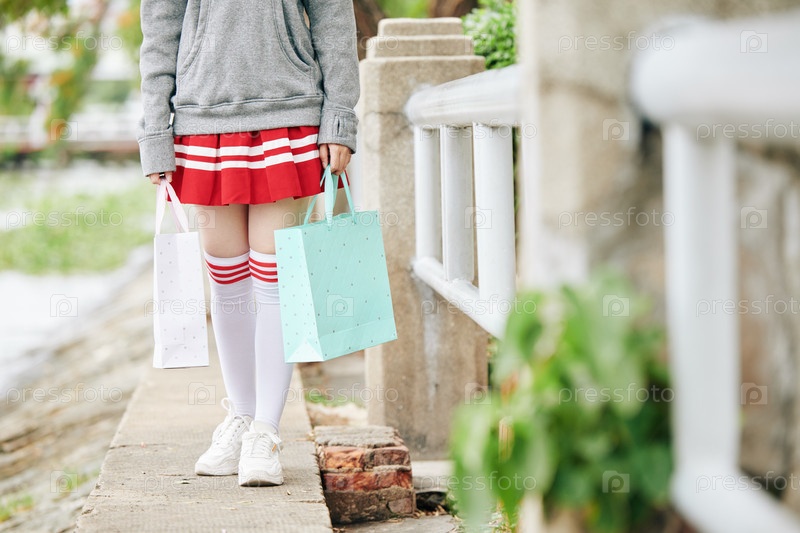 Школьница с бумажными пакетами