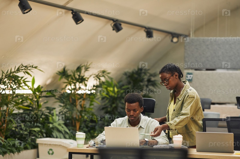 Два человека работают в экологически чистом офисе