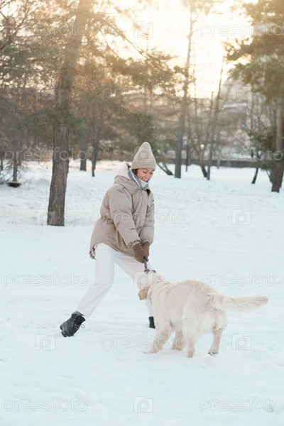 Женщина, играющая с домашним животным снаружи