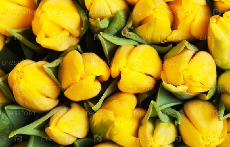 Большой букет красивых желтых тюльпанов