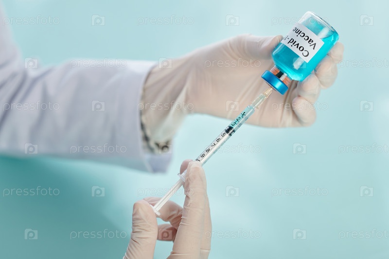 Врач заполняет шприц вакциной