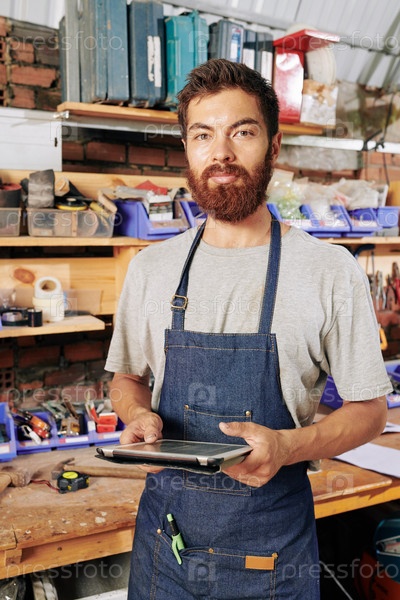 Бородатый плотник в мастерской