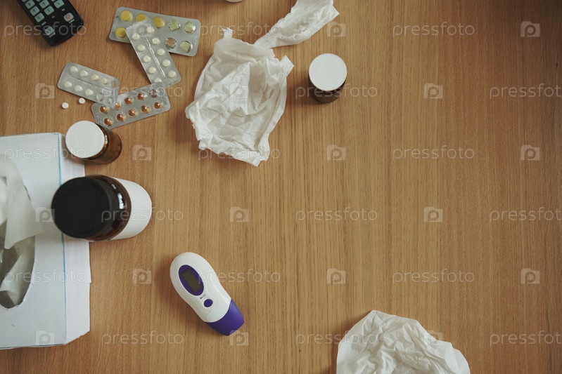 Пузыри с таблетками и бутылки с таблетками и другими медицинскими вещами