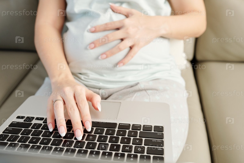 Беременная женщина работает из дома