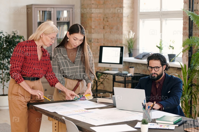 Две креативные женщины-дизайнеры выбирают цвет для нового мобильного приложения