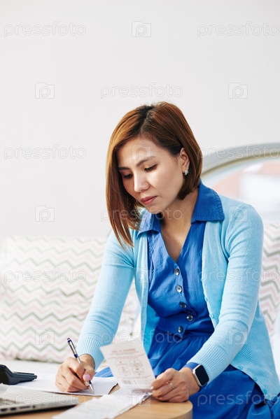 Деловая женщина проверяет счета