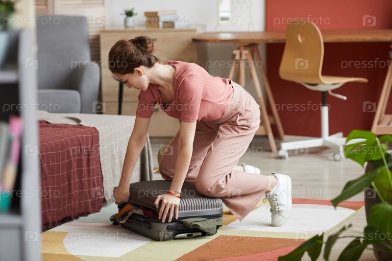 Женщина, собирающая чемодан