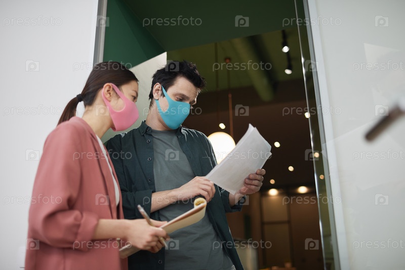 Коллеги по бизнесу, работающие во время эпидемии