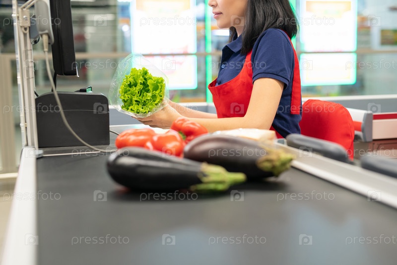 Азиатская женщина, работающая в магазине