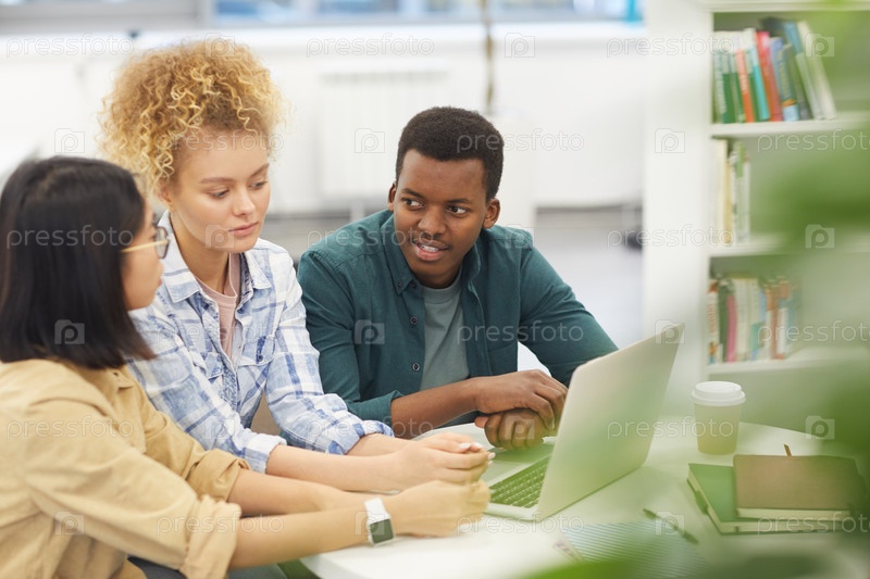 Мультиэтническая группа людей, изучающих в библиотеке