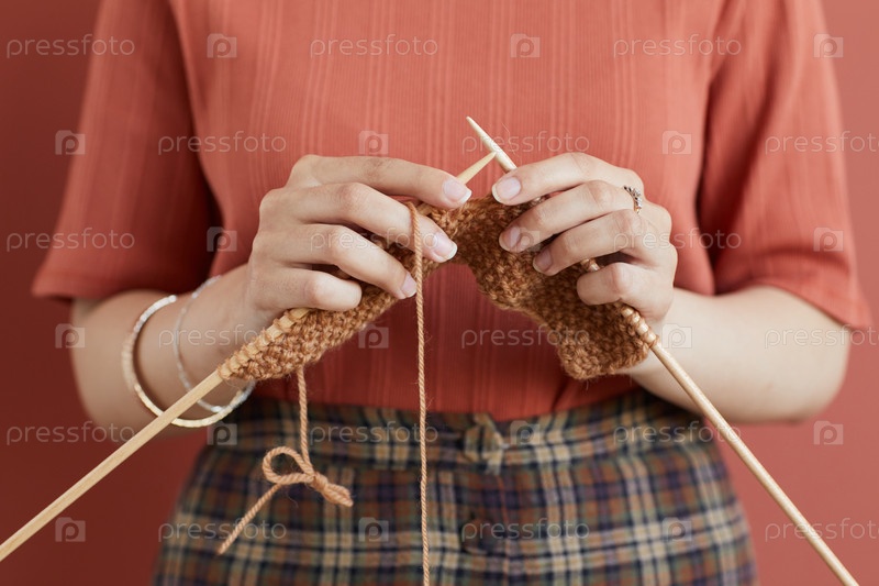 Женщина вяжет иглами