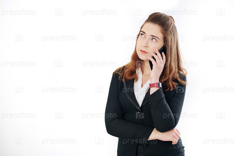 Серьезная деловая женщина, разговаривающая по телефону