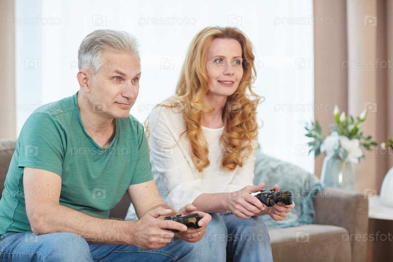 Зрелая пара играет в видеоигры