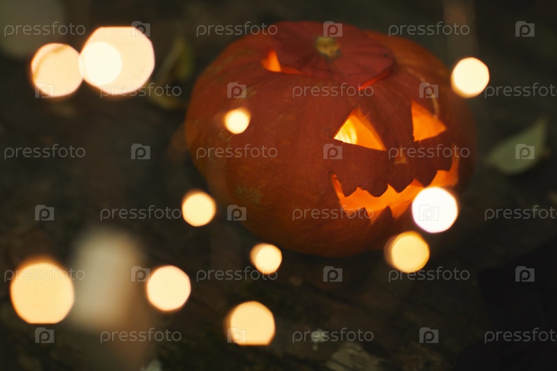 Тыквенный фонарь на заднем плане