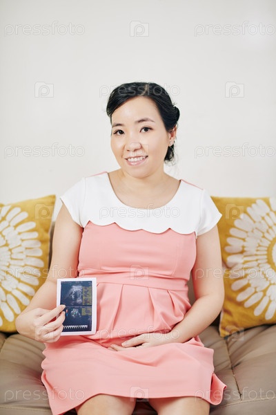 Беременная женщина показывает ультразвуковое сканирование