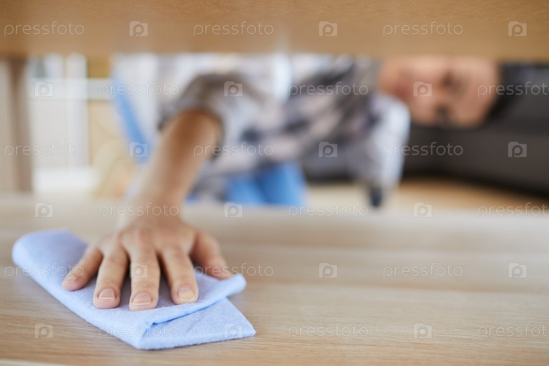 Женщина, стирающая пыль в комнате
