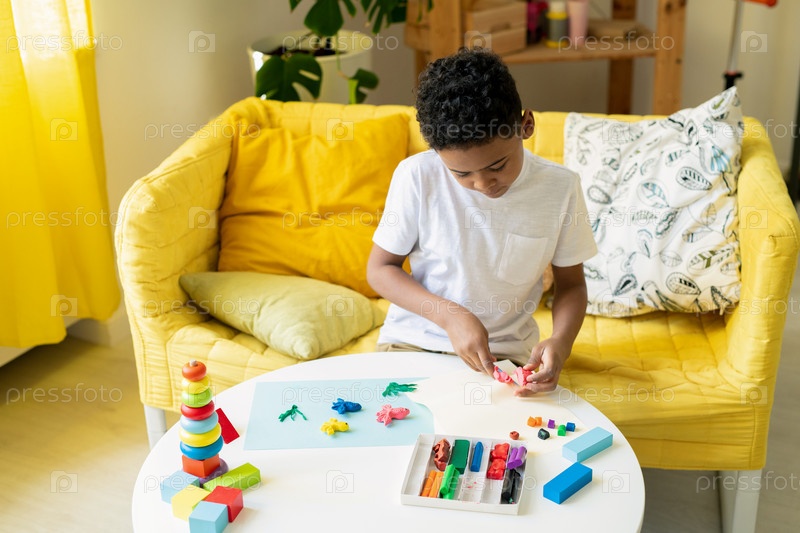 Счастливый маленький мальчик африканской этнической принадлежности ест кукурузные хлопья с молоком на завтрак