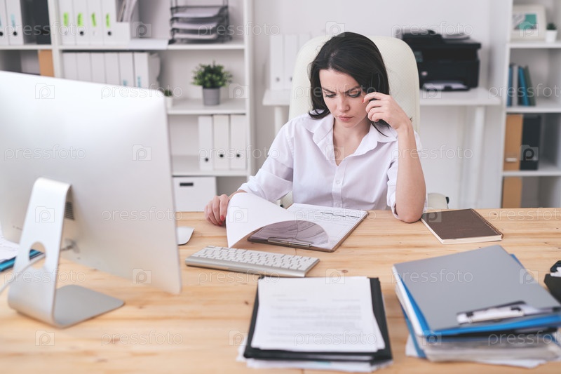 Концентрированная женщина, анализирующая документы