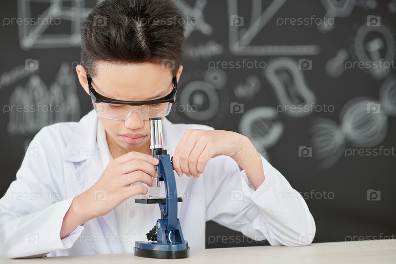 Мальчик, глядящий в микроскоп