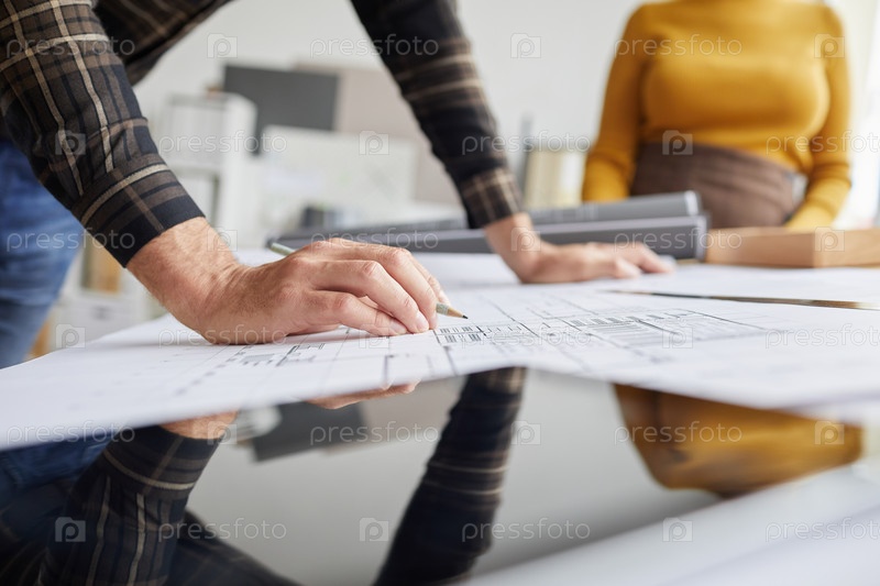 Архитектор, работающий на чертежном столе Closeup Male