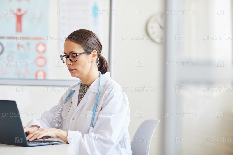 Врач, работающий с ноутбуком в офисе