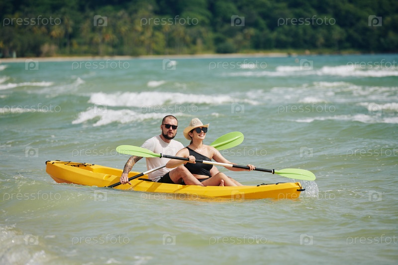 Пара гребёт на байкаках