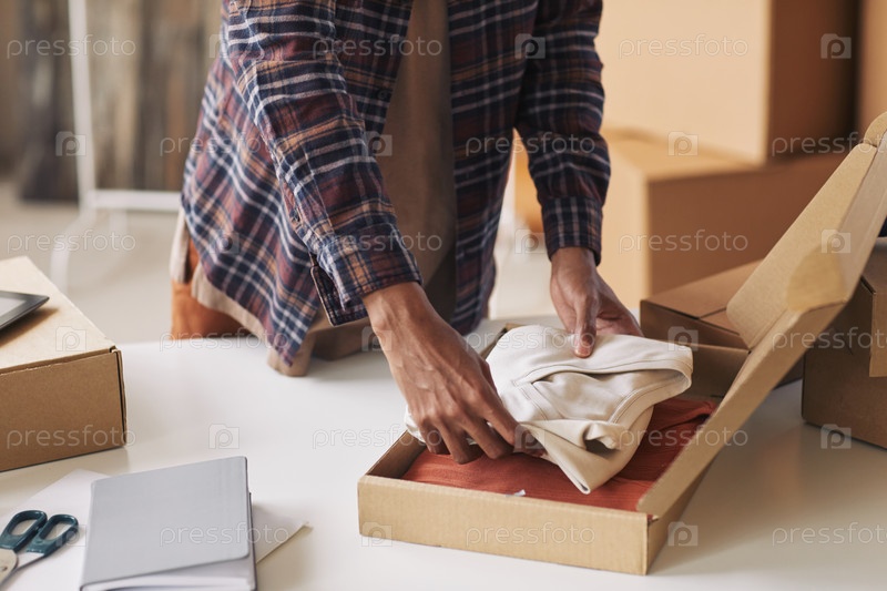 Человек упаковывает посылку