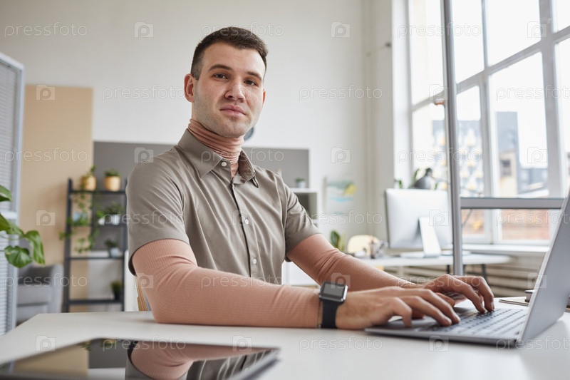 Бизнесмен печатает документ на ноутбуке