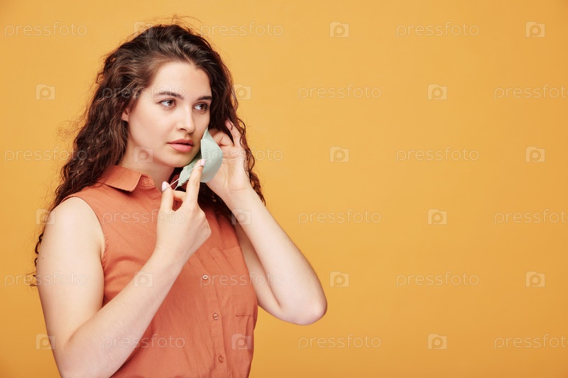 Наделение тканевой маски на лицо