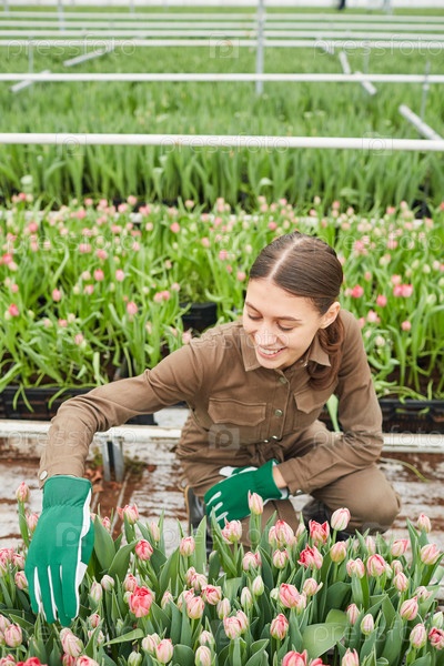 Женщина, работающая на цветочной плантации