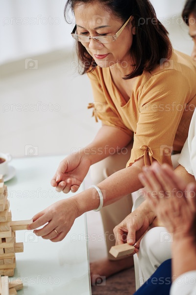 Женщина, удаляющая блок из башни