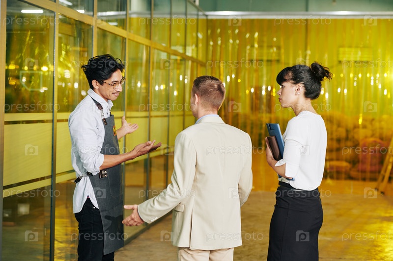 Работник приветствует инвесторов в печь