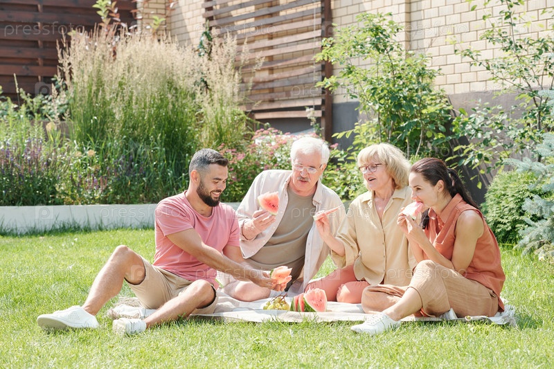 Родители и дети, проводящие пикник