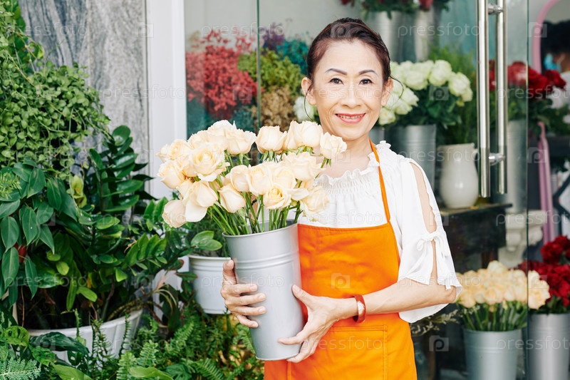 Старший цветочник с ветром свежих роз