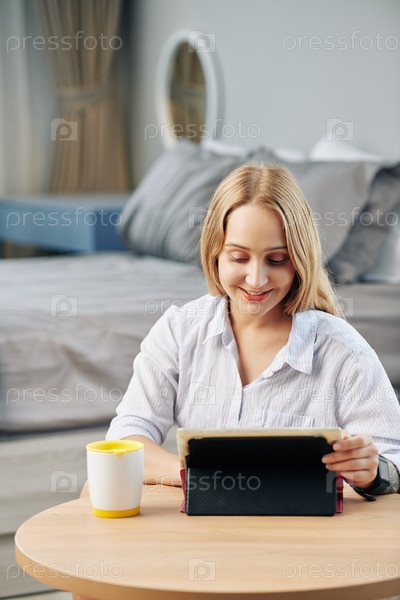 Молодая женщина работает из дома