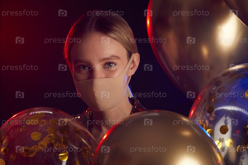 Девушка в маске на вечеринке по случаю дня рождения