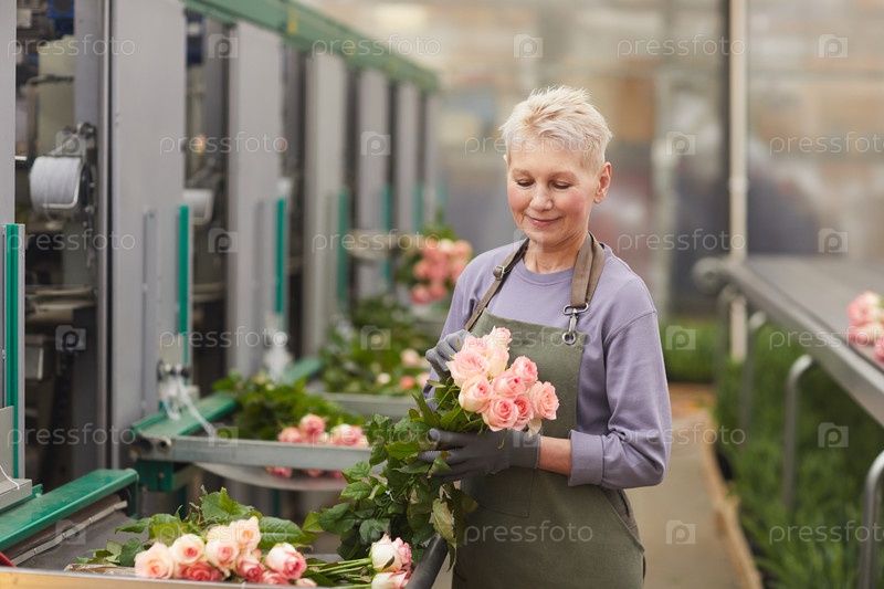 Женщина, заботящаяся о розах