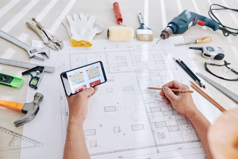 Архитектор работает над чертежом