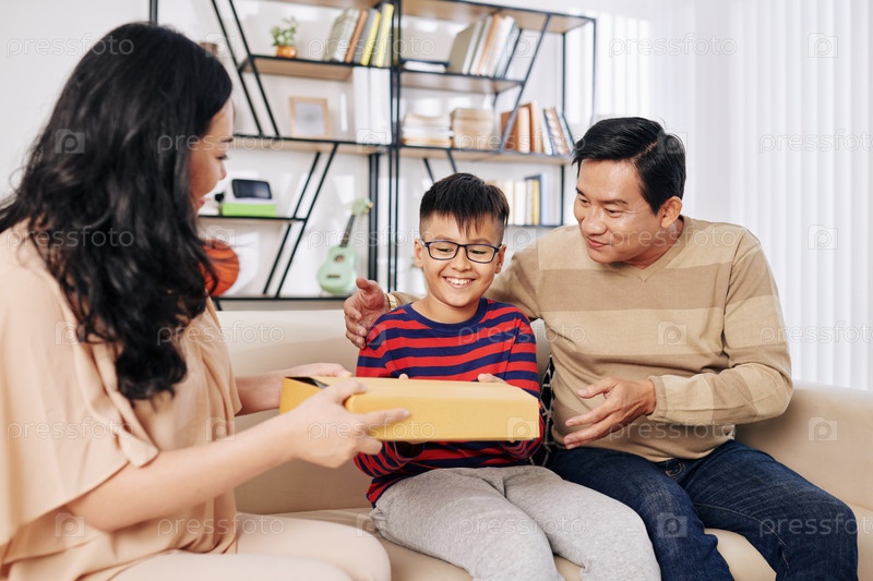 Мальчик получает подарок на день рождения