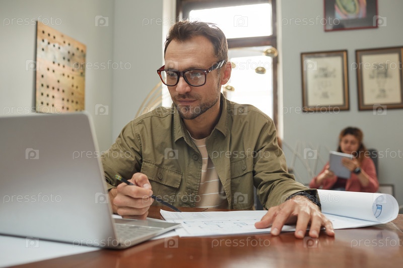 Бизнесмен, выполняющий свою работу