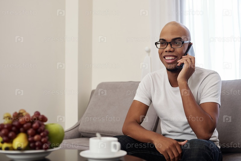 Счастливый мужчина разговаривает по телефону