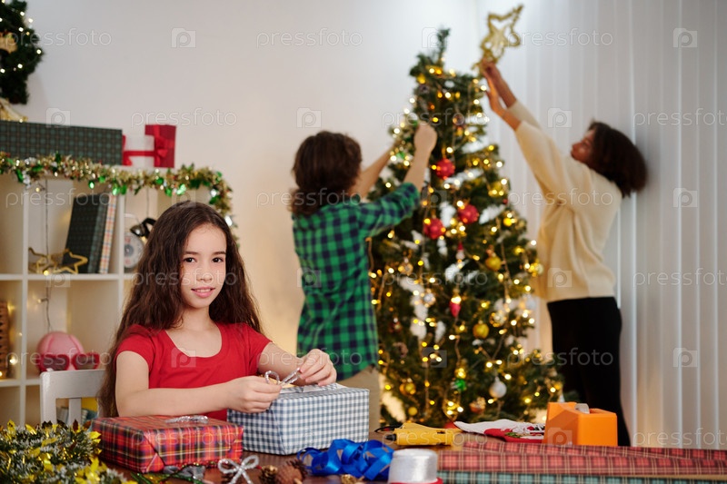 Дети готовятся к рождественской вечеринке
