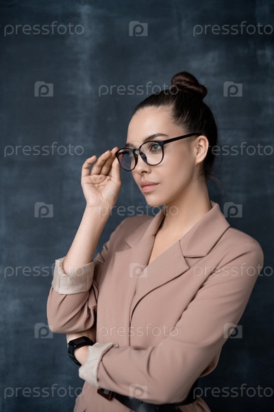 Вдумчивая женщина настраивает очки