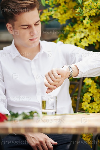 Красивый мужчина проверяет время